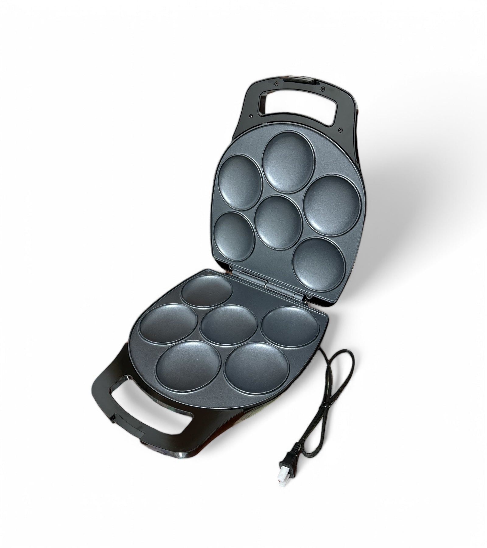Disfruta de arepas perfectas con esta tostadora de 6 puestos Crystal Cuisin. Su diseño con carcasa fría y placas antiadherentes facilita el uso seguro y la limpieza rápida. Cuenta con control de temperatura variable, termostato integrado y luz indicadora para una cocción precisa. Ideal para el hogar o negocios. Funciona con 110V ~ 50-60Hz y tiene una potencia de 1000W.